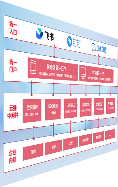 对协作平台提供支持服务,,,支持企业应用与协作平台对接,,,,包含组织同步、、消息集成、、待办集成等。。。支持目前主流的协作平台:钉钉、、企微和飞书。。。